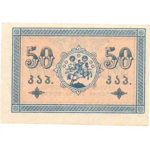 | نوشتههای پشت اسکناس | 50 კაპეიკი 50 მიღება სავალდებულოა როგორც ხურდა ფულის (Translation: Kapeiki, Acceptance as money is mandatory) |