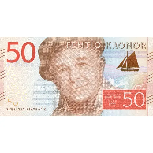 (Translation: Fifty Kronor, National Bank of Sweden)