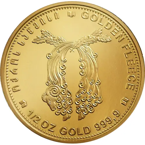 正面铭文 from left to right: ო ქ რ ო ს ს ა წ მ ი ს ი GOLDEN FLEECE bottom: 1/2 OZ GOLD 999,9
