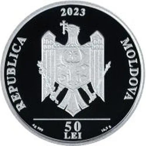 In the foreground – the State Coat of Arms of the Republic of Moldova; at the top - the year of issue `2023`; - at the bottom – three inscriptions: `Ag 999`, `50 LEI` and `16,5 g` in exergue; - also in exergue - the inscription `REPUBLICA MOLDOVA` is engraved in capital letters. |