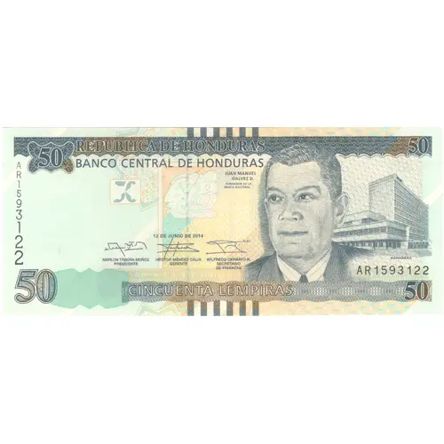 | Obverse lettering | REPUBLICA DE HONDURAS BANCO CENTRAL DE HONDURAS BANADESA CICUENTA LEMPIRAS |