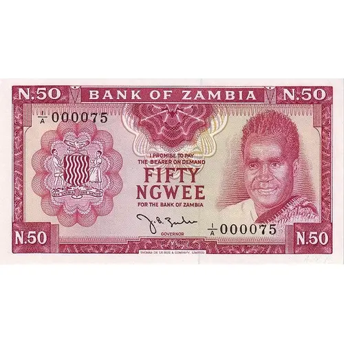 BANK OF ZAMBIA I PROMISE TO PAY THE BEARER ON DEMAND FIFTY NGWEE FOR THE BANK OF ZAMBIA |