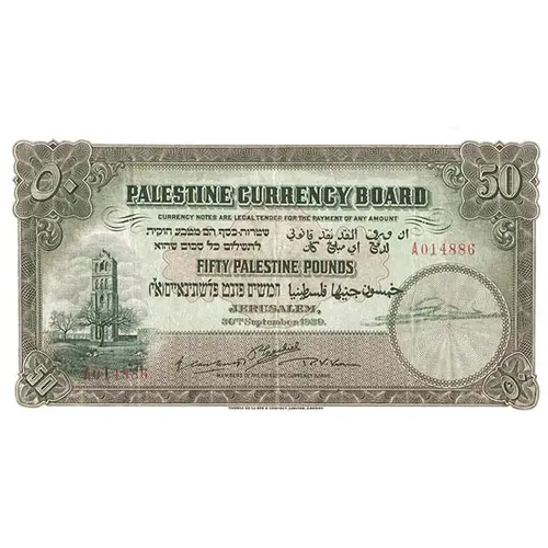 | Descripción del anverso | White Tower of Ramle, also known as the Ramle Crusaders` Tower, the Tower of the Forty Martyrs, and the White Mosque. `Palestine Currency Board`, Denomination in English, Hebrew and Arabic. |