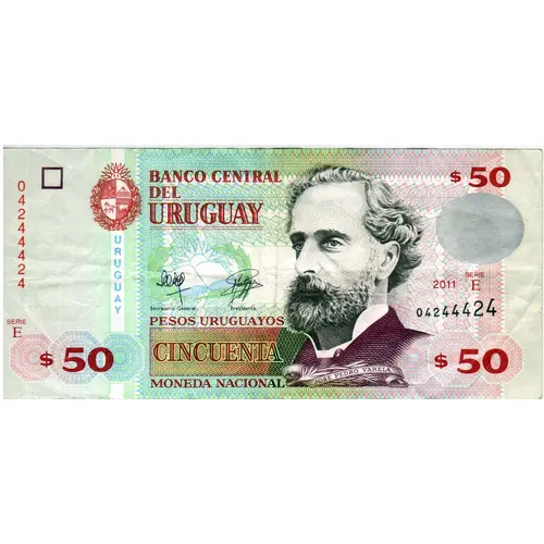 (Translation: Central Bank of Uruguay Pesos Uruguayos Fifty National currency)