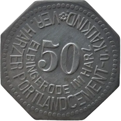 | Légende de l’avers | 50 ELBINGERODE IM HARZ VER. HARZER PORTLANDCEMENT-u. KALKIND. ✿ |