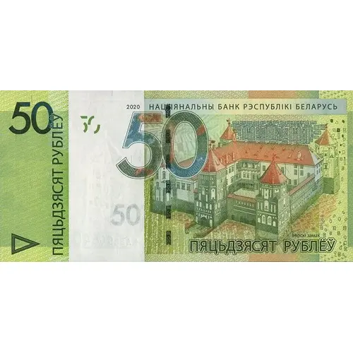 (Translation: Fifty Rubles, National Bank of the Republic of Belarus)