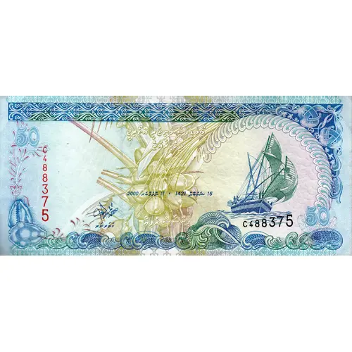 | 背面铭文 | FIFTY RUFIYAA 50 50 MALDIVES MONETARY AUTHORITY 50 |
