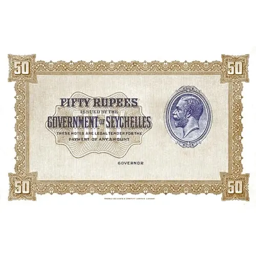 | Obverse lettering | FIFTY RUPEES ISSUED BY THE GOVERNMENT OF SEYCHELLES THIS NOTES ARE LEGAL TENDER FOR THE PAYMENT OF ANY AMOUNT |