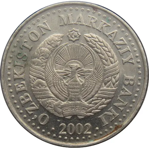 | Obverse lettering | • OʻZBEKISTON MARKAZIY BANKI • 2002 (Translation: Central Bank of Uzbekistan) |