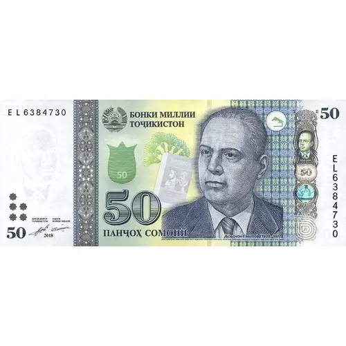 (Translation: National Bank of Tajikistan, Fifty Somonī)