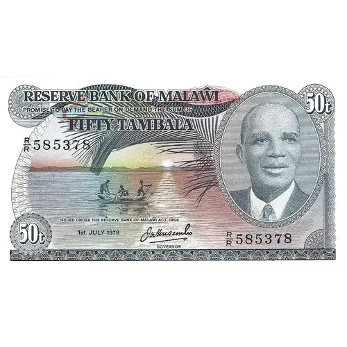 Reserve Bank of Malaŵi Promise to pay the bearer on demand the sum of Fifty Tambala 50t 50t Issued under the Reserve Bank of Malaŵi Act, 1964 |