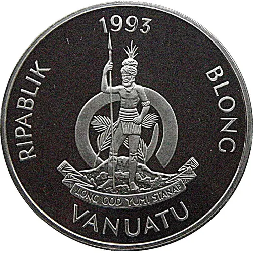 RIPABLIK BLONG 1993 VANUATU LONG GOD YUMI STANAP (Translation: Republic of Vanuatu In God We Stand) |