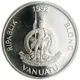 Descrizione del dritto The Vanuatu coat of arms featuring a Melanesian warrior standing in front of a curved boar`s tooth above a scroll reading `LONG GOD YUMI STANAP`. Value above.