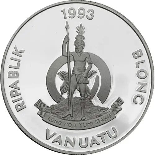 Obverse lettering RIPABLIK 1993 BLONG VANUATU LONG GOD YUMI STANAP
