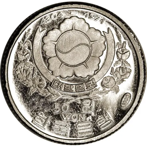 | Obverse lettering | 4303 - 1970 대한민국 50 원 WON 한국은행 1000 (Translation: Republic of Korea 50 Won Bank of Korea) |