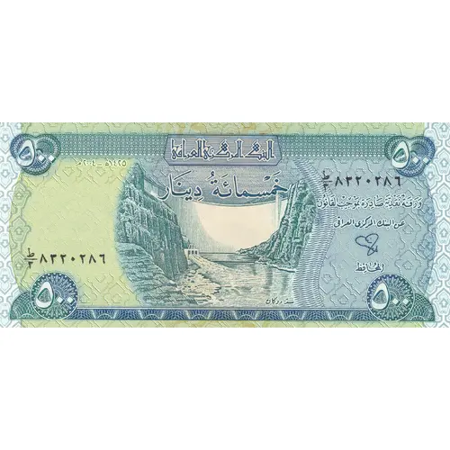 Légende du revers Central Bank of Iraq Five Hundred Dinars