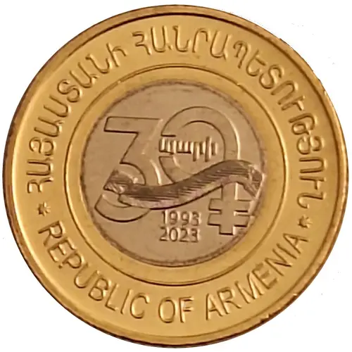 | Popis líce | Commemorative design featuring a numerical `30` combined with the Armenian dram currency sign |