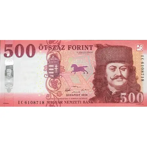 | Описание защиты | On the left, the portrait of Ferenc Rákóczi with the denonimation `500` below. |
