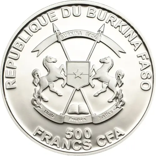 | Opis líce | REPUBLIQUE DU BURKINA FASO UNITE PROGRES JUSTICE 500 FRANCS CFA (Translation: Republic of Burkina Faso, Unity Progress Justice, 500 Francs CFA) |