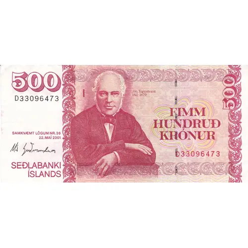 500 FIMM HUNDRUÐ KRÓNUR SAMKVÆT LÖGUM NR. 36 22. MAI 2001 SEÐLABANKI ÍSLANDS |