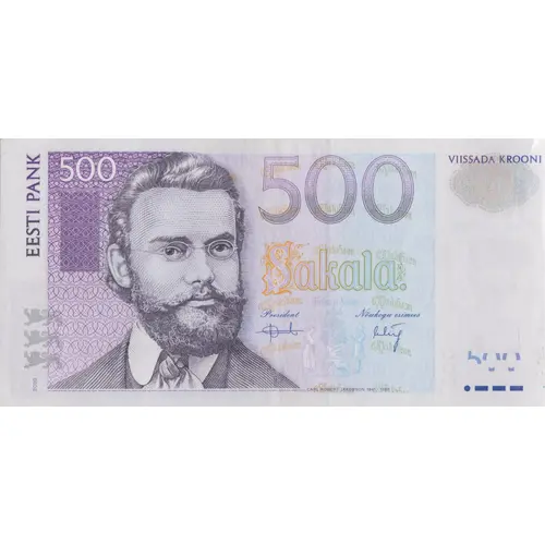 | Opschrift voorzijde | EESTI PANK - VIISSADA KROONI (Translation: Bank of Estonia - 500 Krooni) |