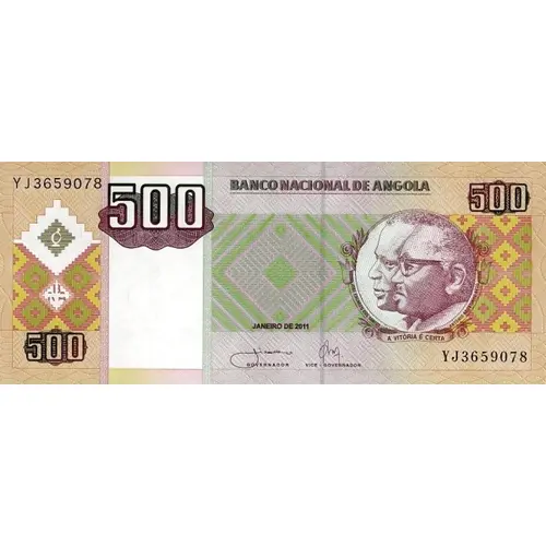 | Obverse lettering | BANCO NACIONAL DE ANGOLA 500 A VITÓRIA É CERTA (Translation: National Bank of Angola, Victory is Certain) |