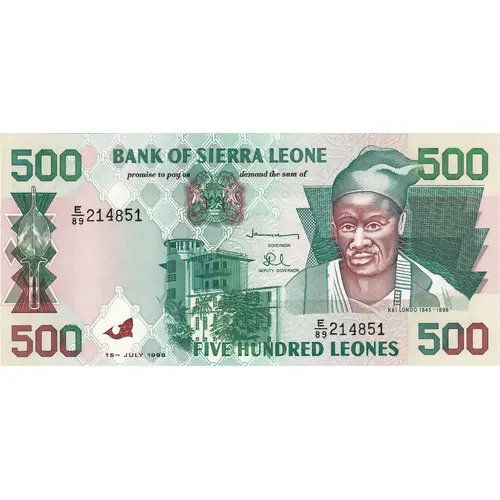 | Mô tả mặt trước | Kissi King warrior Kai Londo (1845-1896) at right, spearhead at left, arms at upper center, State House at lower center. |