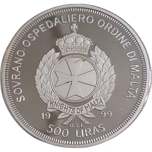 | نوشتههای روی سکه | SOVRANO OSPEDALIERO ORDINE DI MALTA KNIGHTS OF MALTA 1999 O.S.J. 500 LIRAS |
