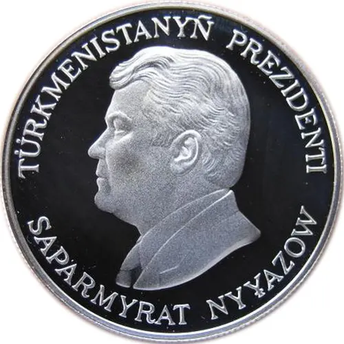 | Legenda do anverso | TÜRKMENISTANYÑ PREZIDENTI SAPARMYRAT NYҰAZOW (Translation: Turkmenistan President Saparmurat Niyazov) |