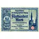 (Translation: Five hundred Marks German Imperial currency 500 Mark This Notgeld note becomes invalid if it isn`t exchanged within two weeks after the request of the Senate`s administration in the Municipality of Danzig in the city Kammer.)