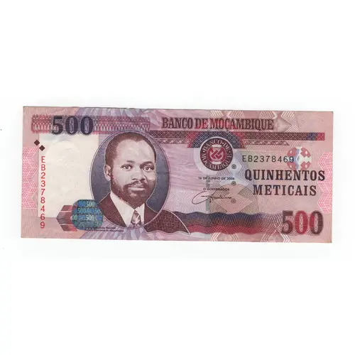 | Obverse description | BANCO DE MOÇAMBIQUE 16 DE JUNHO DE 2006 QUINHENTOS METICAIS 500 samara Moisés Machel primeiro presidente de Mocambique |