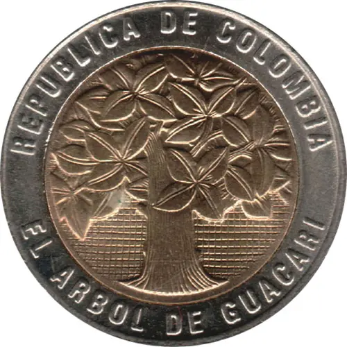 | Opschrift voorzijde | REPUBLICA DE COLOMBIA EL ARBOL DE GUACARI (Translation: Republic of Colombia The Guacari Tree) |