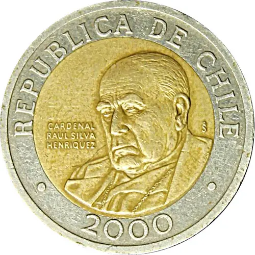 | Legenda do anverso | REPUBLICA DE CHILE So CARDENAL RAUL SILVA HENRIQUEZ F.ORE.P. 2000 (Translation: Republic of Chile So Cardinal Raul Silva Henriquez 2000) |