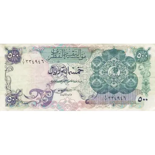 | Opis rubu | THE QATAR MONETARY AGENCY FIVE HUNDRED RIYALS |