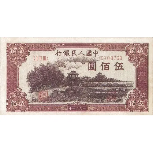 (Translation: People`s Bank of China 500 Yuan Year 1951)