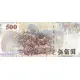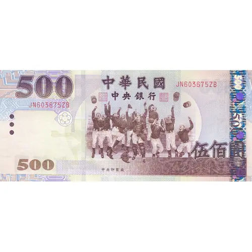 | Légende de l’avers | 中華民國 中央銀行 伍佰圓 中央印製廠 (Translation: Republic of China Central Bank of the Republic of China 500 Yuan Central Printing Factory) |