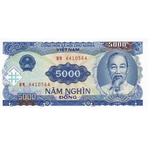 | Obverse lettering | CỘNG HÒA XÃ HỘI CHỦ NGHĨA VIỆT NAM 5000 NĂM NGHÌN Đồng (Translation: Socialist Republic of Vietnam 5000 Five Thousand Đồng) |