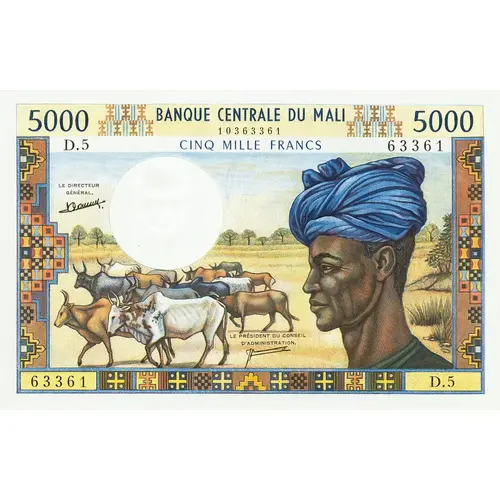 (Translation: Central Bank of Mali Five Thousand Francs)