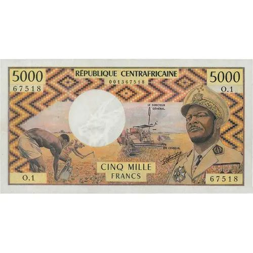 RÉPUBLIQUE CENTRAFRICAINE CINQ MILLE FRANCS (Translation: CENTRAL AFRICAN REPUBLIC FIVE THOUSAND FRANCS) |