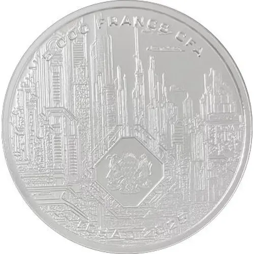 Obverse description Features the coat of arms of the Republic of Chad, with a futuristic looking city in the background along with face value and date.