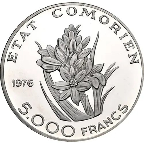 | Légende de l’avers | ETAT COMORIEN 1976 5.000 FRANCS |