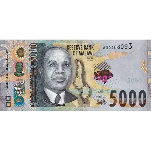 Five thousand Kwacha 5000 Reserve Bank of Malawi 5000 5000 |