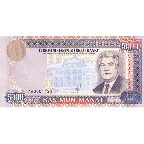 | Obverse lettering | TÜRKMENISTANYÑ MERKEZI BANKY ŞU BANKNOT TÖLEGLERIÑ ÄHLI GÖRNÜŞLERI ÜÇIN ҰÖREҰÄR BÄŞ MÜÑ MANAT (Translation: Central Bank of Turkmenistan, This banknote is valid for all types of payments, Five Thousand Manat) |