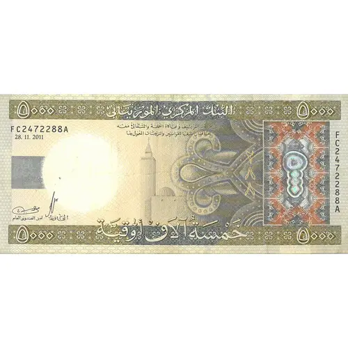 | Leyenda del anverso | البنك المركزي الموريتاني خمسة آلاف أوقية أوقية ٥٠٠٠ (Translation: Central Bank of Mauritania, 5000 Five Thousand Ouguiya) |
