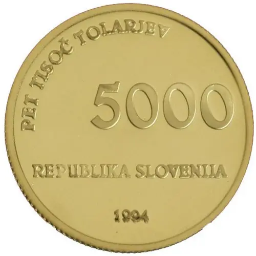 | 表面の銘文 | PET TISOČ TOLARJEV 5000 REPUBLIKA SLOVENIJA 1994 |