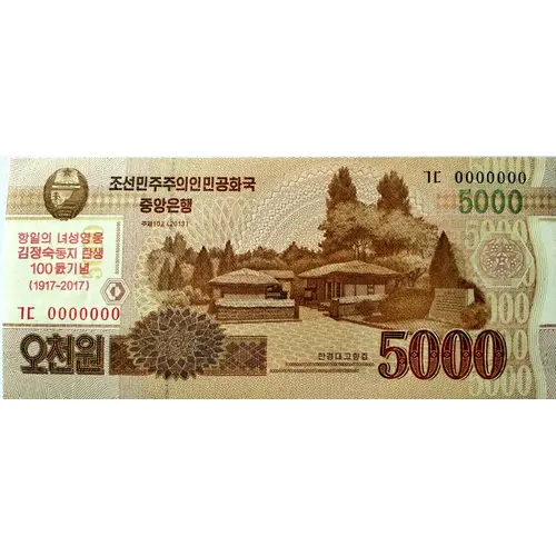 (Translation: The Central Bank of the Democratic People`s Republic of Korea, FiveThousand Won)