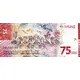 | 背面铭文 | DENGAN RAHMAT TUHAN YANG MAHA ESA, NEGARA KESATUAN REPUBLIK INDONESIA MENGELUARKAN RUPIAH SEBAGAI ALAT PEMBAYARAN YANG SAH DENGAN NILAI TUJUH PULUH LIMA RIBU RUPIAH PERURI TC 2020 (Translation: By the Grace of God, Unitary Republic of Indonesia issued Rupiah as a legal tender with the value of Seventy Five Thousand Rupiah Peruri Year of Issue 2020) |