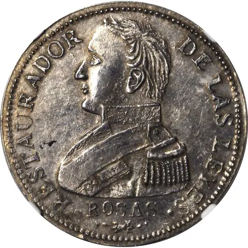 | Legenda del dritto | · RESTAURADOR DE LAS LEYES · ROSAS (Translation: · RESTORER OF THE LAWS · ROSAS) |
