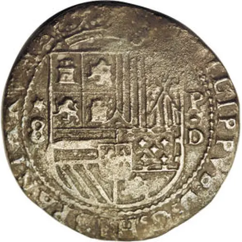 | Description de l’avers | VIII or 8, workshop, coat of arms, assayer. There are also HISPANIARVM, HISPANIARVM ET and HISPANIARVMR. |