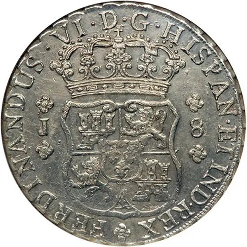 | Надписи аверса | FERDINANDUS · VI · D · G · HISPAN · ET IND · REX * J 8 |
